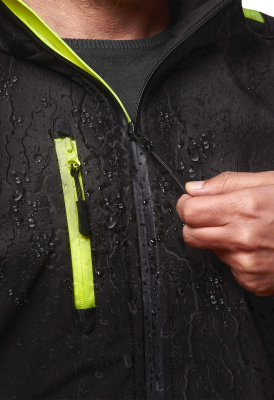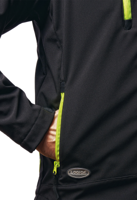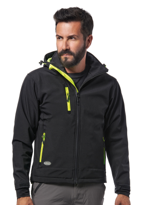Giacca in soft-shell Logica Slalomcap5 nera e gialla con cappuccio staccabile Unisex