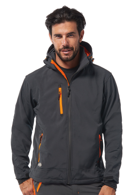 Giacca in soft-shell Logica Slalomcap5 grigio scuro-arancio fluo con cappuccio staccabile Unisex